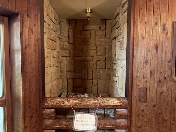女湯のサウナ室の壁には丸太が埋め込まれた造りになっており、山小屋のような温もりのある空間が広がっています。